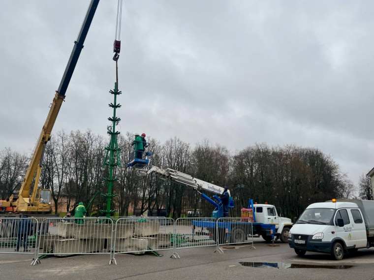 Главную новогоднюю ель в Великом Новгороде начали устанавливать раньше обычного