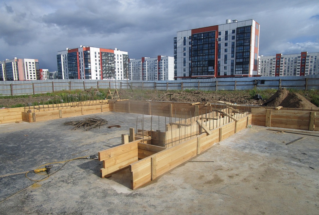 На объекте выполнены работы по подготовке земельного участка. Строительная площадка ограждена, оборудована площадка для складирования материалов и конструкций. Завершены земляные работы по устройству котлована. Выполнена бетонная подготовка под монолитную железобетонную плиту. Ведутся работы по гидроизоляции.