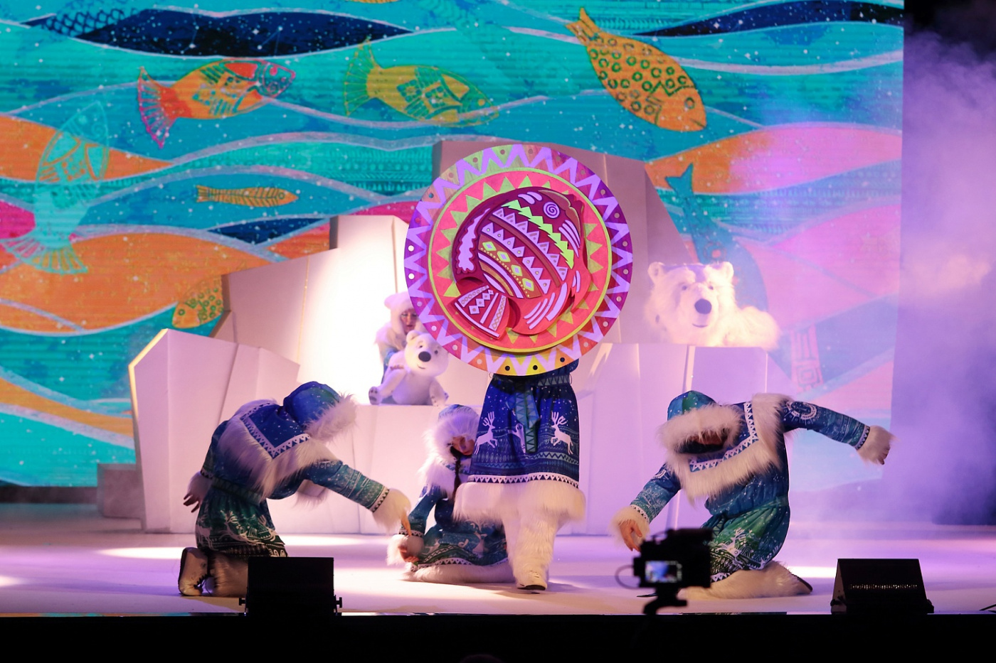 Спектакль стал заметным событием прошлого сезона. В сотрудничестве с режиссером из Кирова Наталией Красильниковой над постановкой работала новгородская команда художника-постановщика Екатерины Чазовой, художника по костюмам Светланы Чазовой, композитора Антона Вакурова и хореографа Марины Шевченко. Умка, его мама и северный мальчик появляются на сцене в виде кукол авторской конструкции. Актеры Валерия Горелкина, Андрей Андреев, Анна Кондрашина, Петр Ковальский, Ирина Гришанина, Вера Веркау и Дмитрий Брейкин освоили не только приемы театра кукол, но и игру на этнических музыкальных инструментах.