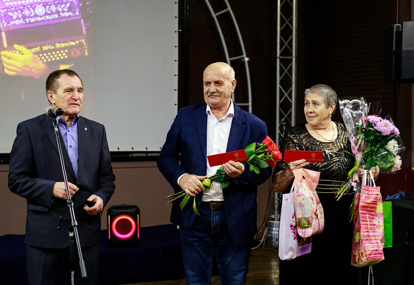 Этот момент приурочили к проведению в Центре культуры «Русич» творческого вечера литературного объединения «Живой мост», участниками которого являются Людмила Максимова и Владислав Рыбин. В этот день огласили итоги поэтического конкурса среди взрослых и школьников «О войне написано не всё...», посвящённого 80-летию со Дня Победы. В нём приняли участие не только жители нашего региона, но и поэты из Подмосковья и Карелии. Голосование жюри было закрытым. И так совпало, что оба виновника торжества вошли в тройку победителей во взрослой возрастной категории.