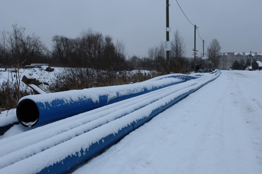 Также идёт строительство сети водоотведения в деревне Плетниха. Сейчас техническая готовность объекта составляет 92%. Подрядчик проложил 1 646,6 метров канализационной сети.