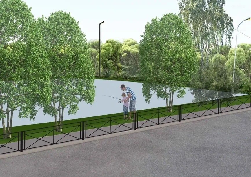 В ходе благоустройства здесь планируют вырубить старые деревья, очистить водоём, обустроить пешеходные дорожки, устроить пирс с ограждением, установить светильники и пешеходное ограждение у проезжей части Московской улицы, а также поставить скамейки и урны.