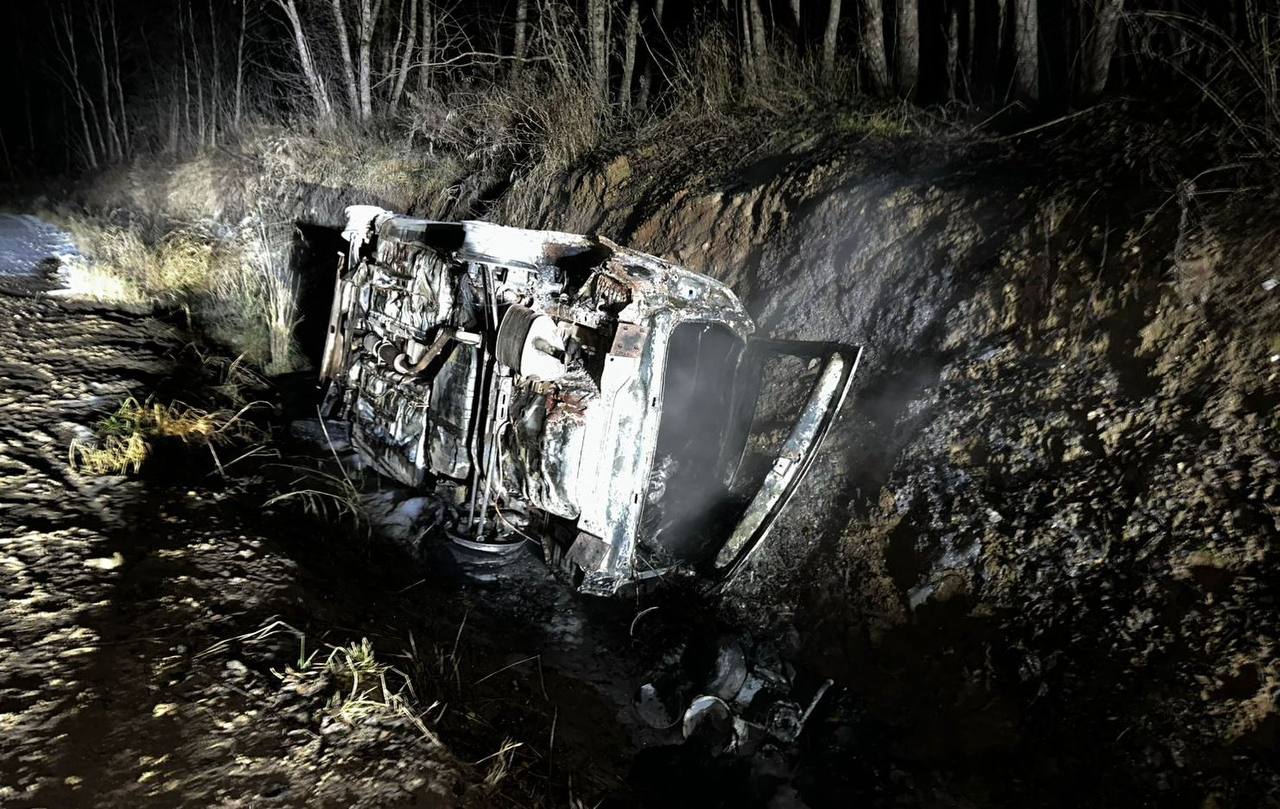 В Пестовском округе опрокинулся и загорелся автомобиль